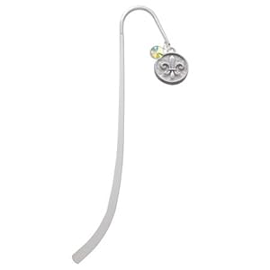 Product Description : Silver Plated Charm Bookmark with Silver Plated Fleur di Lis Round Seal with AB Crystal Swarovski Drop