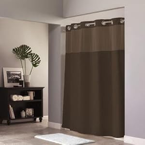 Product Description : Focus Electrics Hklss Brown Fabric Curtain (rbh40my303) - : Hookless Brown Fabric Shower Curtain with Shear Window